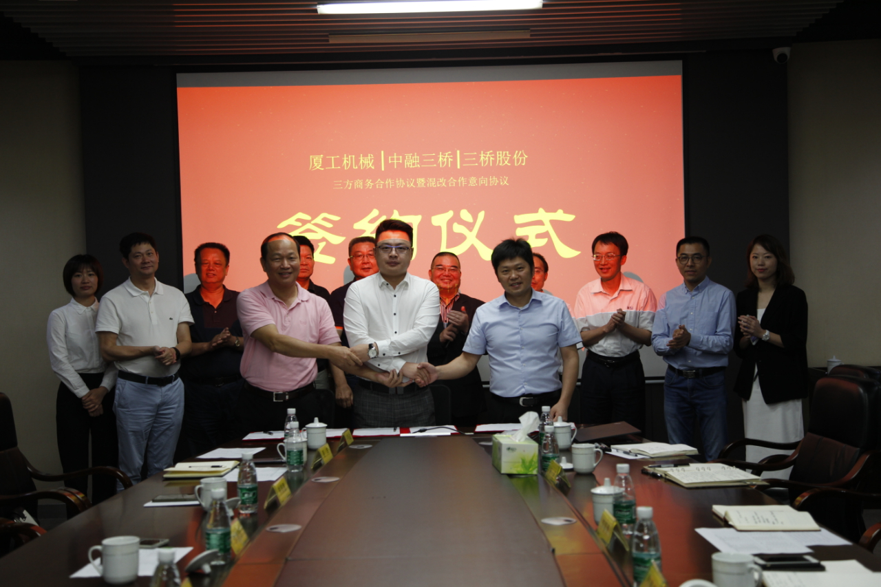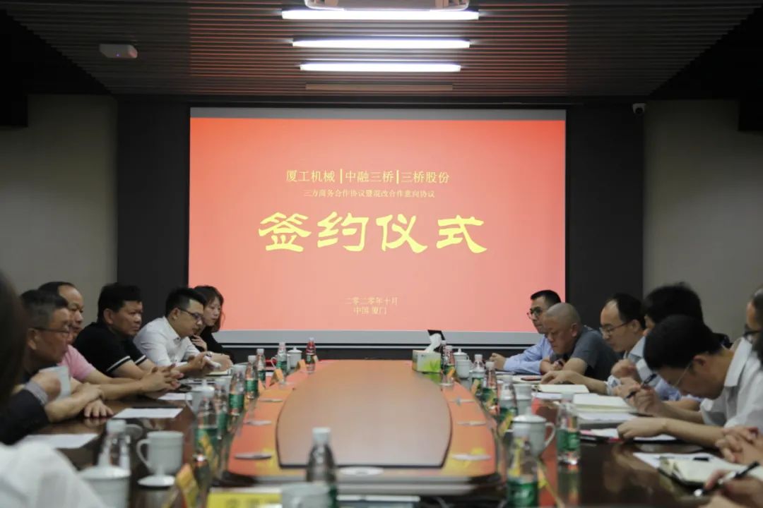 福建省機(jī)械工業(yè)聯(lián)合會(huì)會(huì)長許振明;廈工股份公司總裁林春明、副總裁兼財(cái)務(wù)總監(jiān)李喜勇、總工程師黃鶴艇;中融三橋公司蔡報(bào)軍、董事長姜洋、總經(jīng)理吳繼成出席簽約儀式。