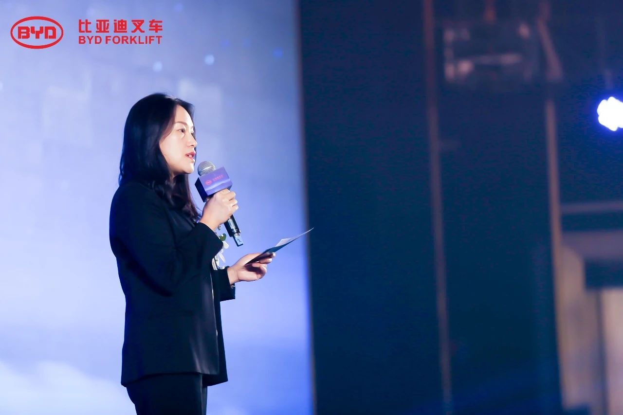 大會現(xiàn)場“高朋滿座,濟濟一堂”,比亞迪叉車國內(nèi)銷售總監(jiān)陳麗萍女士首先向在座來賓致歡迎辭。