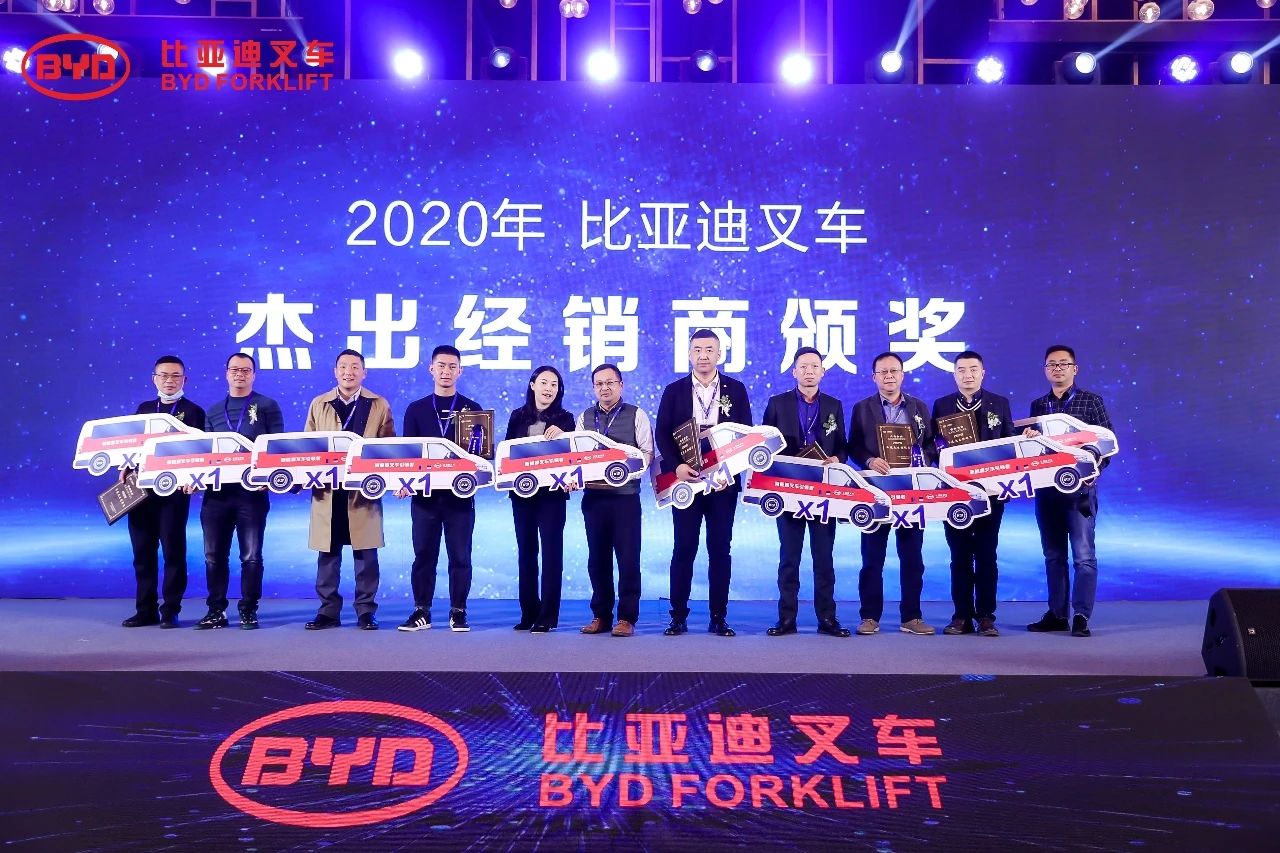 大會同時頒發(fā)了非凡營銷獎、卓越經(jīng)銷商獎項,也對在2020年銷售業(yè)績表現(xiàn)突出的經(jīng)銷商進行了獎勵,以感謝他們對比亞迪叉車發(fā)展做出的杰出貢獻。