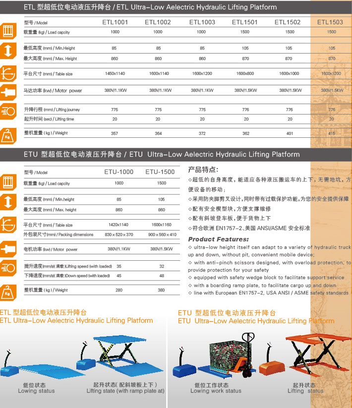 超低的自身高度,能適應(yīng)各種液壓搬運(yùn)車的上下,無需地坑,方便設(shè)備的移動;
